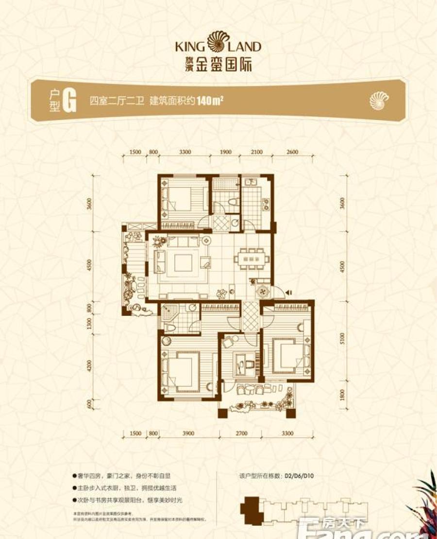 D2、D6、D10#楼G户型-4室2厅2卫-140.0㎡